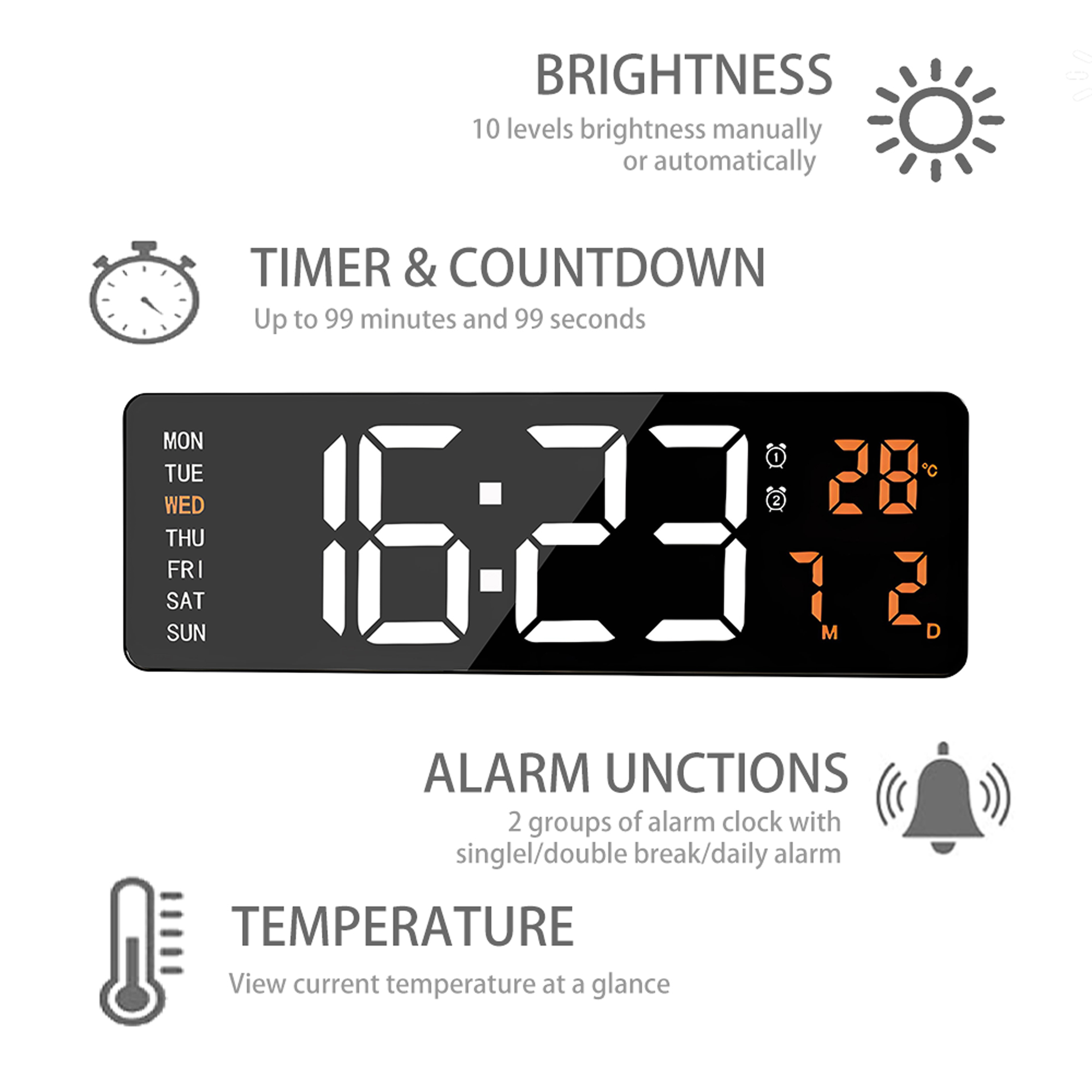 Do both for Wall Mounted and Desktop: Our digital wall clock can be easily mounted on the wall or placed on a desk.Whether you're looking to save space or add a stylish touch to your desk, this feature provides flexibility and convenience