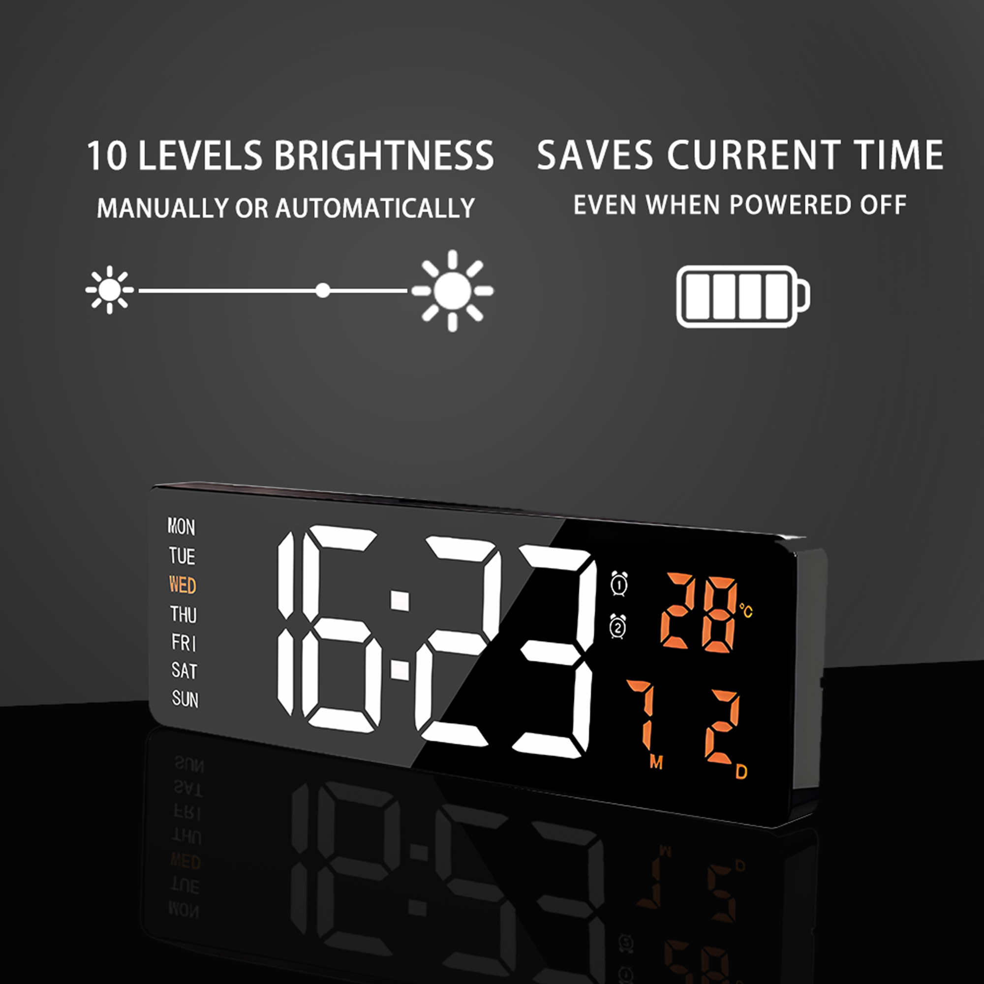 10 Levels Auto Brightness Dimmer: With 10 levels of adjustable brightness display, you can easily adjust the brightness manually to a comfortable level using the remote control.The LED clock has a built-in auto-dimming sensor that also automatically adjusts the brightness as the light changes, intelligently providing you with what you need