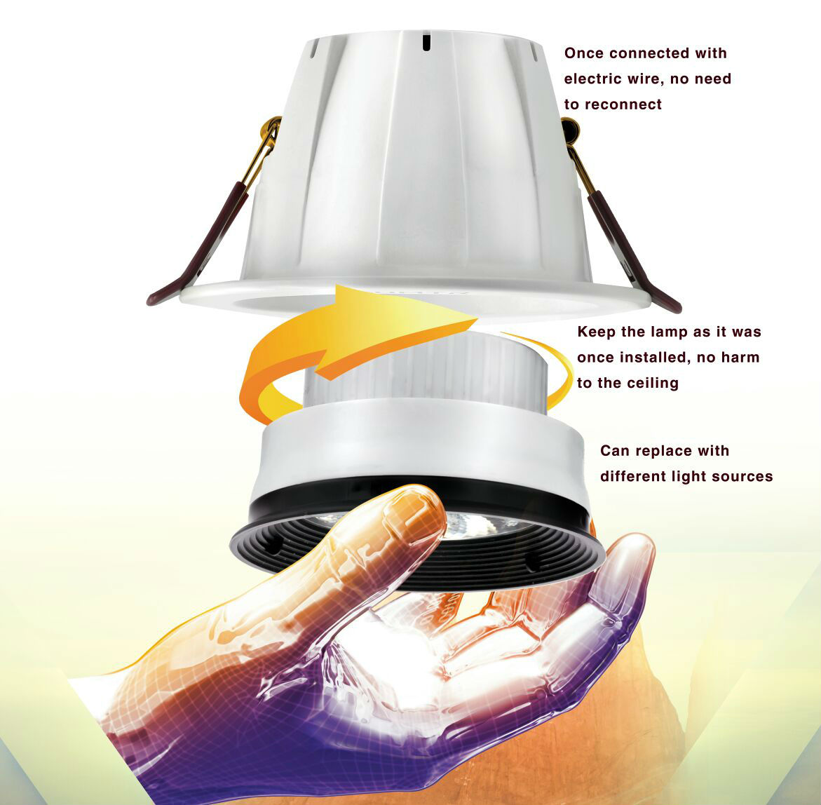 • New replaceable downlight