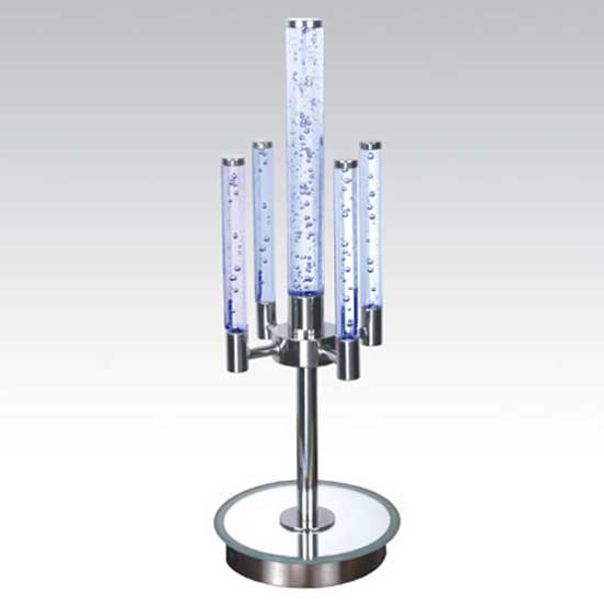This desk lamp comes in a unique candle-holder design. Inside the cylindrical tubes are flowing water and bubbles to create a fantastic lighting effect. The burnished metal shell makes a perfect finish to this lamp.