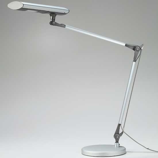 Showcased is an LED desk lamp boasting a minimalist design. The lamp body comes in a slim shape with adjustable joints for your convenience. The high-power LED light provides energy-saving illumination for desktop use.
