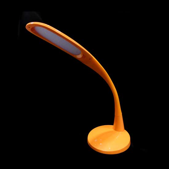 This LED desk lamp in bright orange features a goose-neck design with a modern touch. It is professionally engineered to offer brilliant illumination. The desk lamp is finished with a round base that can stand on any flat surface firmly.