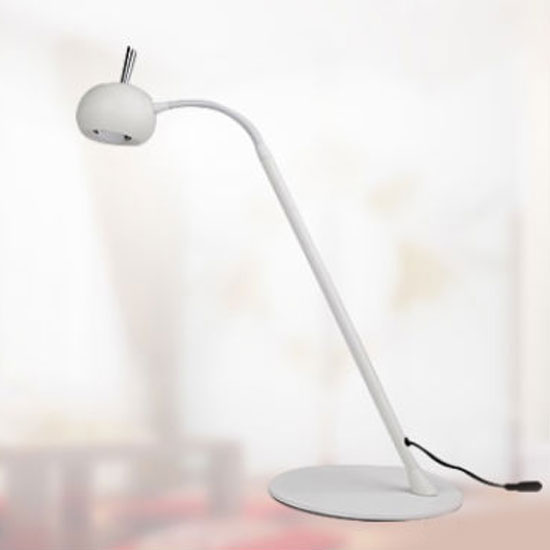 This is an LED desk lamp coming with an allover white finish. It offers sufficient illumination for a wide area. The round base allows the lamp to stand firmly on the desk.