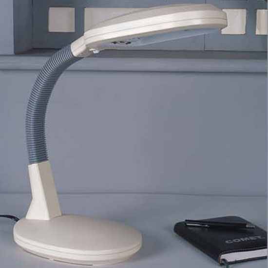This is an LED desk light with a gooseneck arm. Its top and base are designed in white. This desk light is a great choice for your modern home.