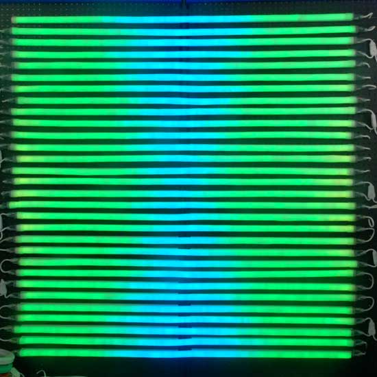 Featured here is an LED display board comprised of equal LED bars. It displays a color-changing effect with computer control. This LED display board is suitable for advertisements and signs.