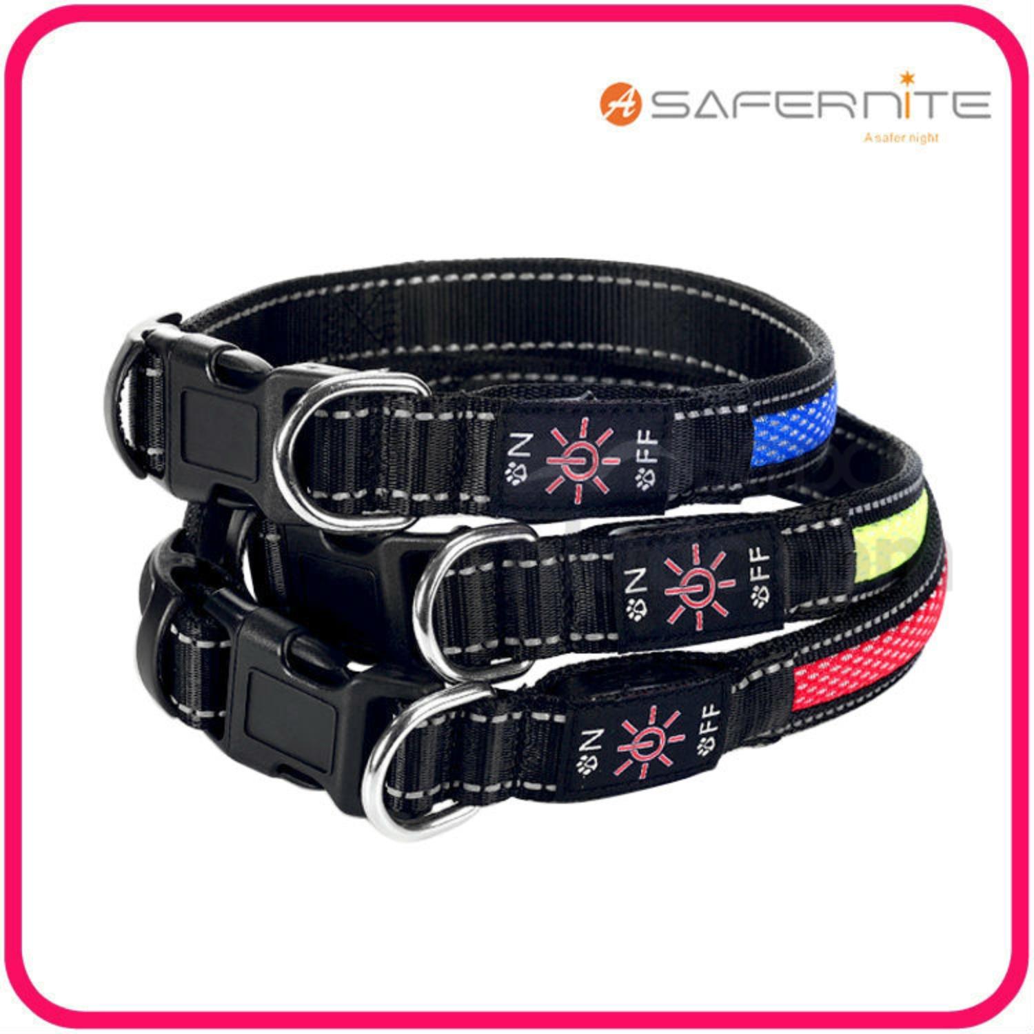 • The material for the nylon + polyester ribbon + plastic buckle + LED