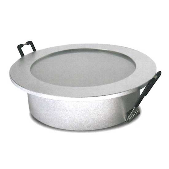 The LED downlight in this photograph comes with a slim design for easy installation. It is equipped with a tailored heat sink to prevent overheat. This downlight is a great lighting appliance to illuminate a showroom or studio.