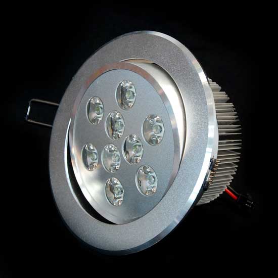 This LED downlight features a swivelable lamp head for directional lighting. The LED downlight is constructed of an aluminum alloy casing for efficient heat dissipation. It is fitted with 9 small LEDs for brilliant illumination.