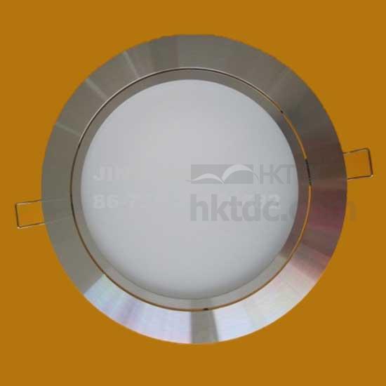 Pictured is a downlight designed with LED light sources. The round downlight is built with high-quality aluminum for enhanced durability. The two brackets ensure easy installation.
