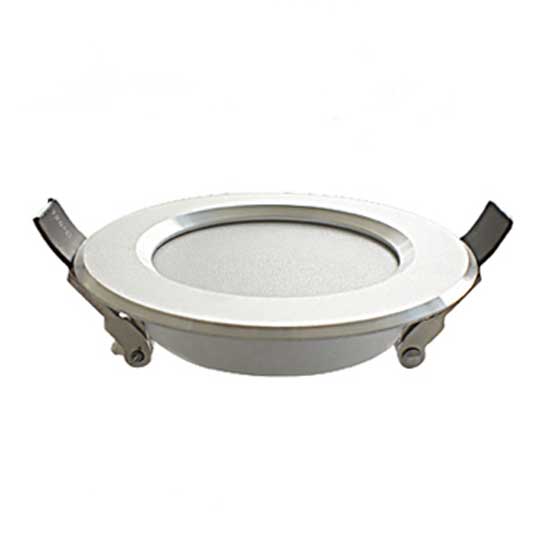 This LED downlight is professionally engineered to provide bright and flicker-free light. The silvery housing guarantees robust construction and first-rate durability. The two clips allow secure flush mounting.