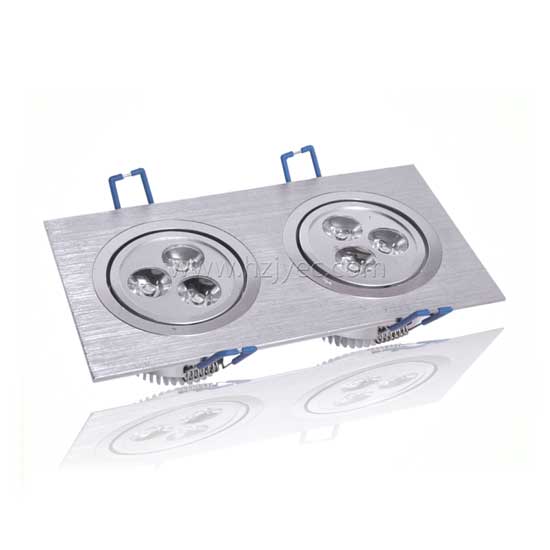 This is an LED downlight in a rectangular shape with a silver surface. It features 2 heads to deliver high brightness with a wide light beam angel. The LED light source boasts a long service life of more than 30,000 hours.