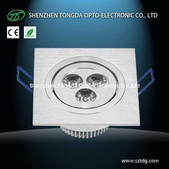 This is an LED downlight in a square shape with a silvery housing. It is made of high-quality aluminum with various fins on the back for good heat dissipation. The LED light source delivers highly bright illumination with low energy consumption.