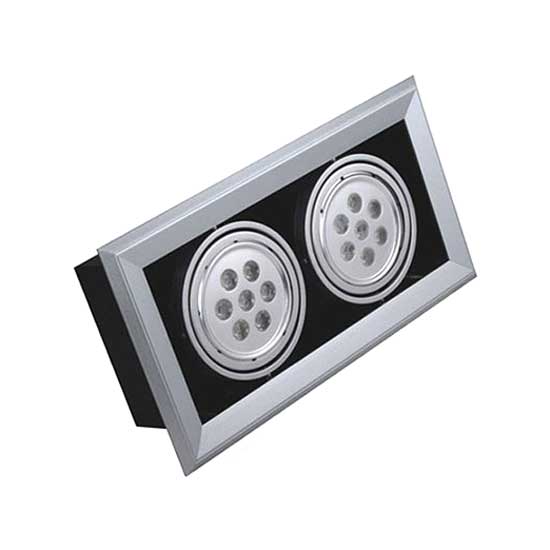 This is an LED downlight designed for ceilings. The box-shaped aluminum housing houses two light heads for wide coverage. This 2W downlight is an energy saving choice.