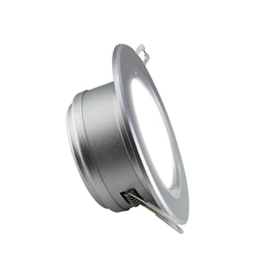 This is an LED downlight with a silvery housing. It is equipped with a well-designed heat sink to ensure excellent thermal dissipation. The LED light source lowers energy costs and has a long lifespan.