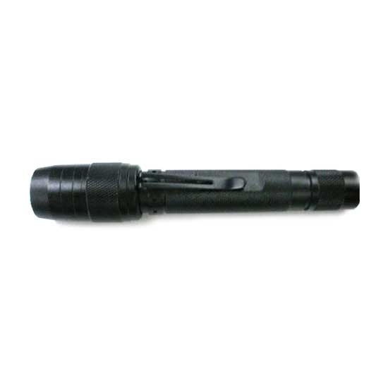 This flashlight adopts eminent CREE 3W LED for excellent performance. The robust housing ensures a prolonged lifespan. This heavy-duty LED flashlight is powered by 2 AA batteries.