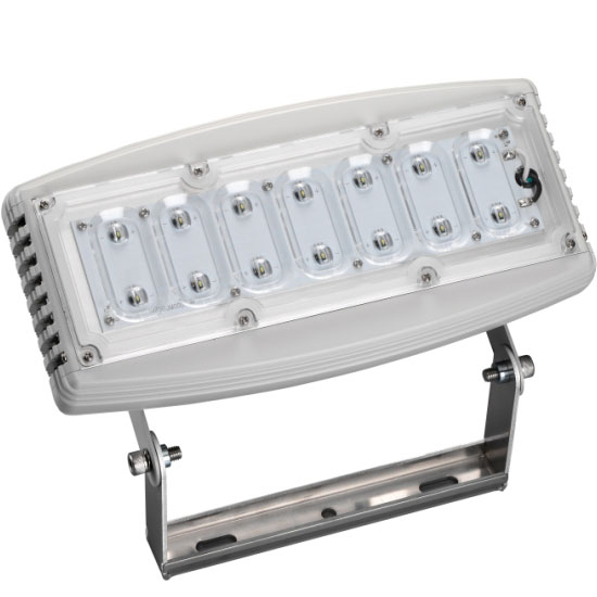 This LED floodlight's wattage ranges from 30W to 120W for various lighting applications. This high-efficiency piece boasts a high level of luminaire efficacy up to 90lm/W. The eco-friendly light makes a great alternative for linear halogen and metal halide fittings.