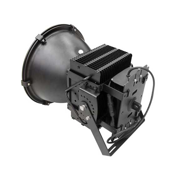 This LED floodlight features a rugged, round-shaped casing in a black finish. It boasts high luminaire efficiency and a long lifespan. The super bright LED floodlight is a great lighting option for airports, metro stations, gymnasiums and so on.