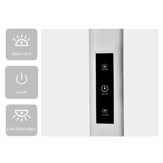 This LED Floor Light is an eye-caring lighting solution designed to enhance reading comfort and ambient illumination. Crafted from a durable combination of iron and plastic, it features an elongated lamp head with adjustable angles for precise light direction. A touch control panel allows for easy on and off operation and smooth dimming adjustment.