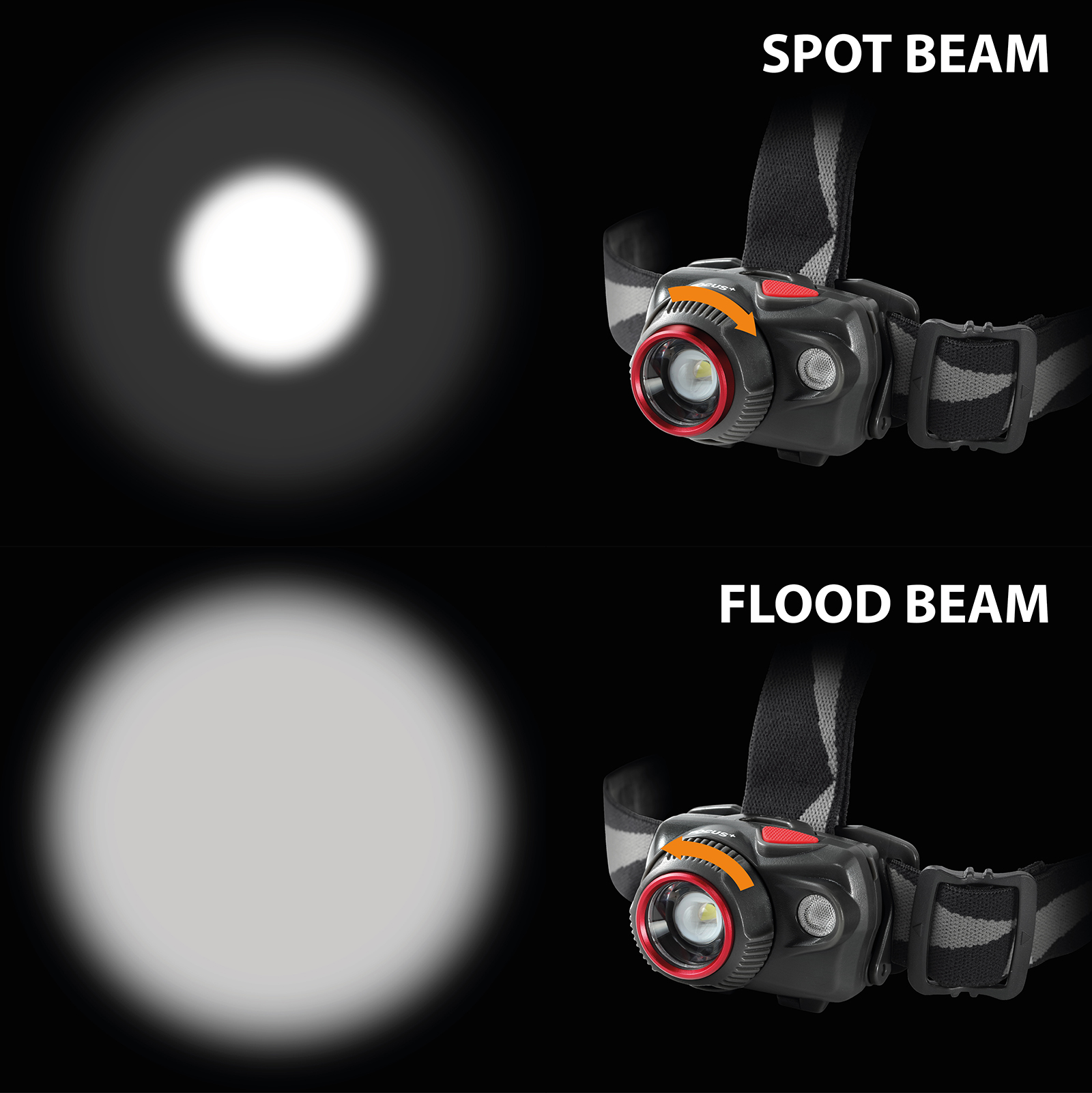 Wear this LED headlamp to enjoy bright hands-free illumination for camping, fishing, hiking, and other outdoor activities. It is uses a white LED with up to 580 lumens and can adjust the light beam between spot beam and flood beam by twisting the lens ring. This LED focus control headlamp has 5 lighting modes to satisfy different lighting needs and is comfortable to wear for a long time.