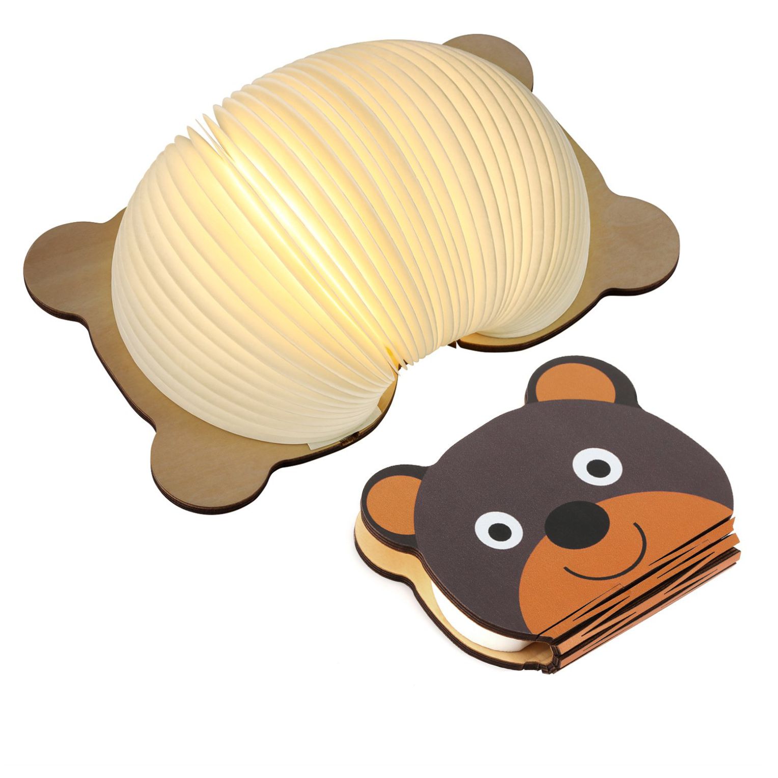 - A LED foldable book lamp in the design and silhouette of a cartoonish bear.
