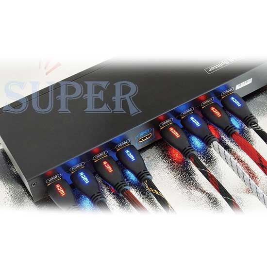 Displayed are HDMI cables with LED lights. Designed professionally, these HDMI cables support an audio return channel and an ethernet channel. This versatile LED HDMI cable also has a 3D-over-HDMI function.