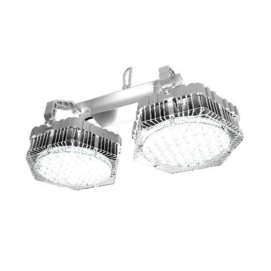 This is an LED high bay light that comes with two light heads. Using high quality LEDs, this lamp features high light efficiency of up to 105lm/W. This energy saving lamp is rated as IP66 for its superior water- and dust-resistant abilities.