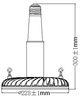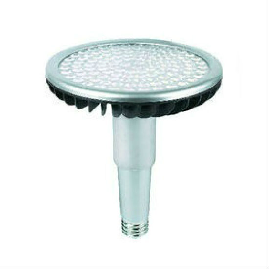 This is an LED high bay light featuring a very durable housing with fins for heat dissipation. The LED light source offers high brightness with low energy consumption. This well-made light is easy to install and requires little maintenance.