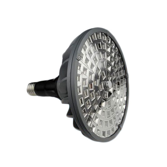Displayed is an LED high bay light coming with an all-black finish. It is fitted with 135 highly efficient LEDs for bright illumination. Light up your factories and warehouses with this practical high bay light.