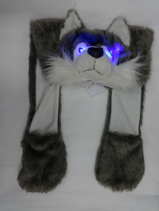 • Fake fur hooded scarf with husky face and led eyes