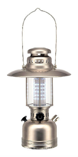 Pictured here is a LED metal hurricane lantern for indoor/outdoor lighting and home decoration use. It flaunts a vintage outlook and is equipped with 50 LEDs to ensure bright illumination. This hurricane lantern is powered by 6 D sized alkaline batteries and has a rotary switch for on, off and dimming.