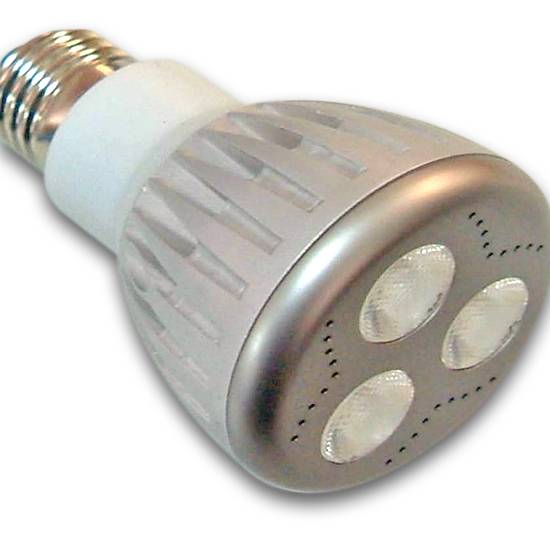 This is a LED lamp that included three LED bulbs on its head. The input voltage of this lamp is 110VAC/ 230VAC. The LED uses CREE XR-E model.