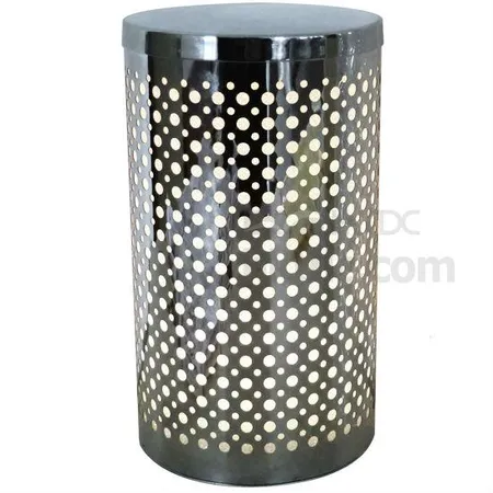 A perforated shade in shimmering metallic glamor allows light to travel through this lamp in geometric diffusion. In addition to its iconic silhouette design, the sturdy protective cover promises lasting durability and protective shielding to the color changing LED lamps within.