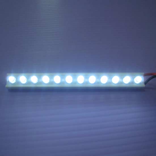 This is an LED light bar in a sturdy PVC housing. The bar comes with 12 pieces of LEDs for ultra-bright illumination. Featuring stable performance with a large viewing angle, this LED light bar is ideal for indoor applications, such as cove lighting, stair decoration and edge lighting.