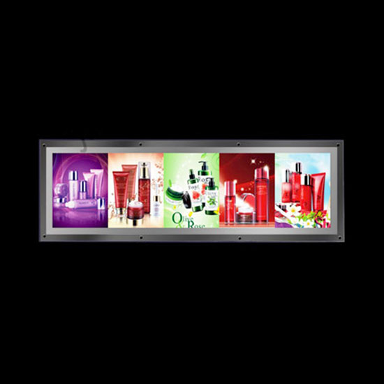 This is an LED light box with a super slim crystal frame in a rectangular shape. Several pictures can be placed in one light box for lowering costs. The LED light source diffuses bright light beams with high stability.