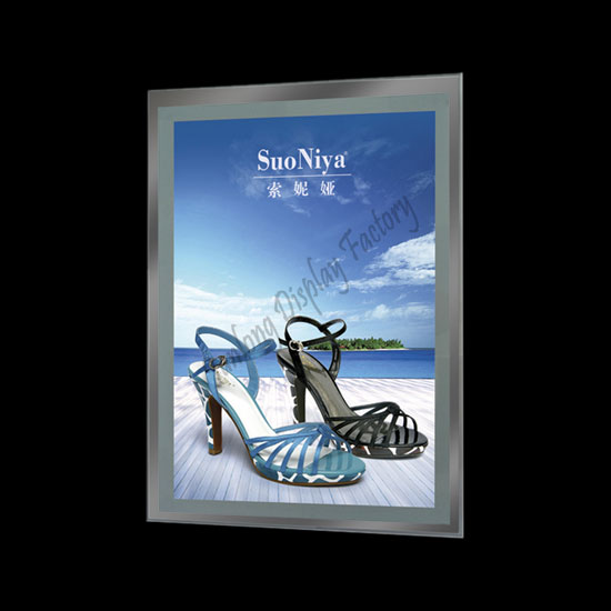 This is an LED light box featuring a magnetic crystal frame without bolts in the front face. It features a super slim structure which can be hung on walls or placed on tables. The LED light source provides a much clearer and brighter lighting effect with a small amount of consumed energy.