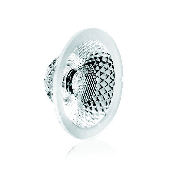 The Gooee LEDchroic lenses offer a controlled, even light distribution beam with high color rendering and reduced glare. This sparkling lens redistributes the light from a single source chip-on-board LED. The precise diamond-like micro facets provide optimum beam control together with a minimal light loss required for precision illumination. In combination with Gooee light engines, the LEDchroic lenses give accurate beam angle control from a single HVLED light source, reducing the overshadowing effect of multi-point LED light sources. And Gooee uses the highest grade of resin for the advanced optics to optimize the quality of the light, improve the color rendering and maximize the lumen output, while reducing the required wattage.