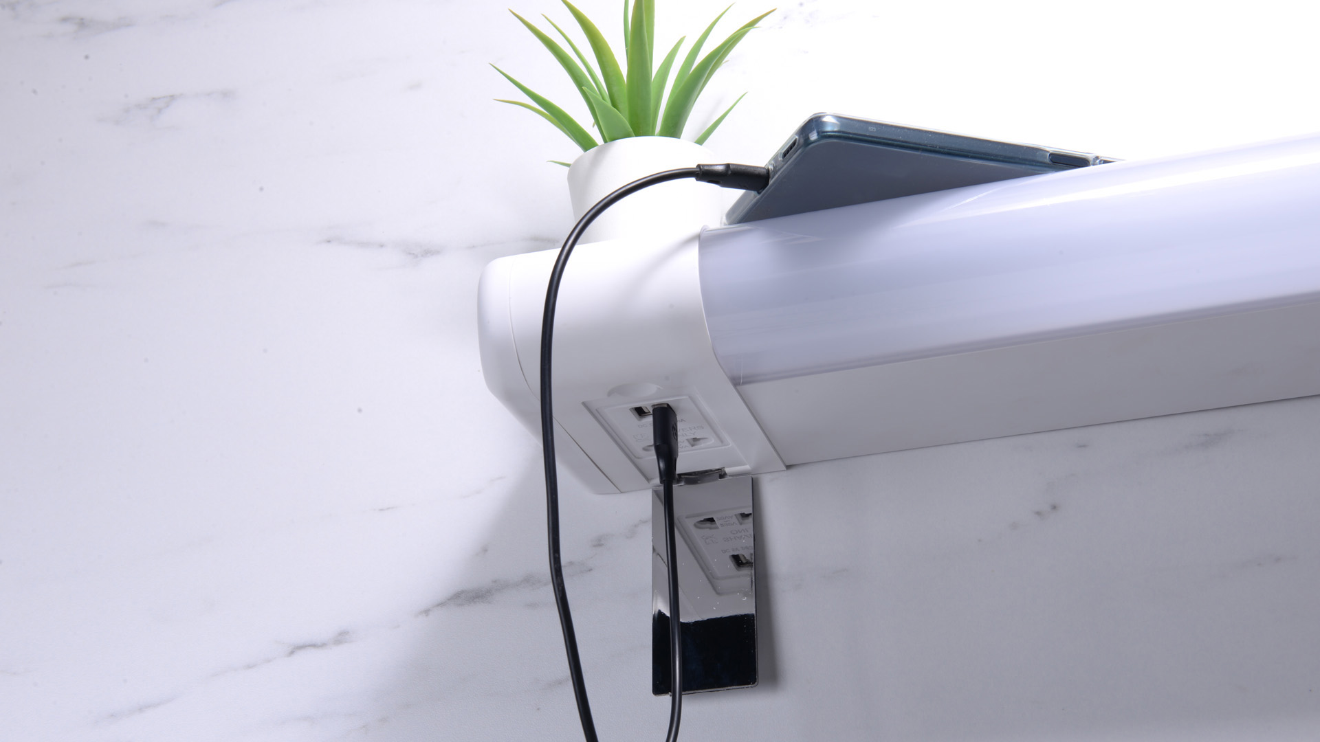 Light up your bathroom and charge your grooming appliances at the same time. The IP44 LED Mirror Light with Dual USB-A Charger is crafted from high-quality reinforced plastic, combining a sleek modern design with practical functionality. Suitable for bathrooms (Zone 3) and various locations in the home, this mirror light is both stylish and reliable.