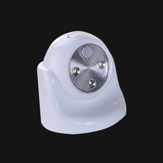 Displayed is an LED motion sensor light featuring an all-white finish. It is fitted with a motion sensor to detect the movements of human beings. It consumes only 0.9W of power.