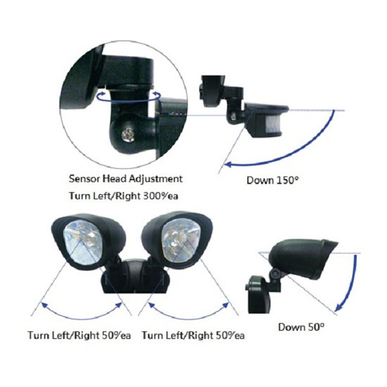 This LED PIR sensor light can be used as emergency lights for its rugged design and auto-detect mechanism. The light comes in a twin-head design with adjustable lighting angles. The LED light sources give high brightness with less power used.