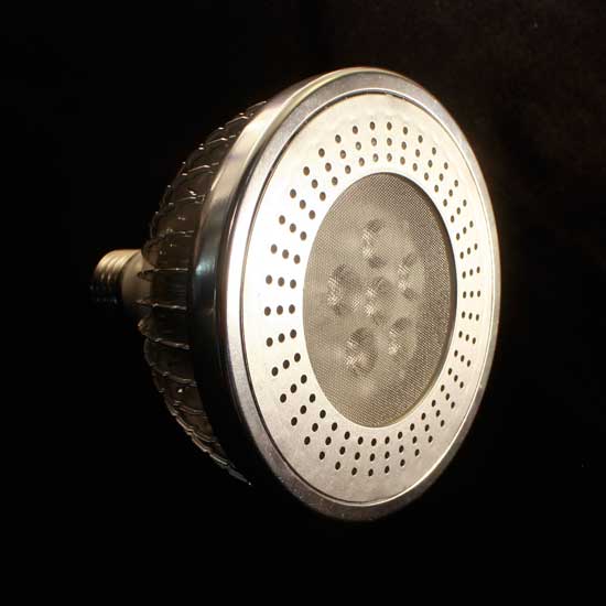As shown is an LED par light with a robust golden housing. This piece which is used on stages can generate strong illumination with reduced energy consumption. The light comes with 6 LED CREE light sources.
