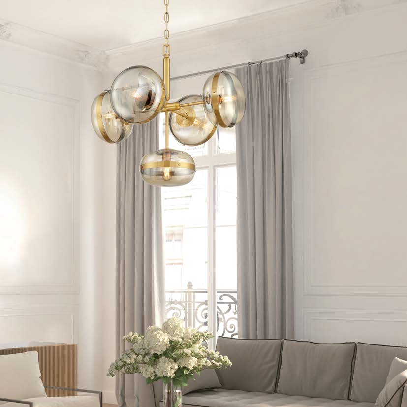 This LED pendant lamp is a striking blend of luxury and functionality, boasting a dazzling gold frame suspended by a robust chain. It features five LED lights, each encased within a glass globe, enhancing this product's luxurious touch while ensuring a soft and even spread of light. Additionally, the adoption of LED technology ensures the energy efficiency and longevity of this light, providing users with a cost-effective, sustainable, and long-lasting lighting solution without compromising on brightness. A premium pendant lamp that not only offers superior illumination but adds a luxurious touch to any interior decor.