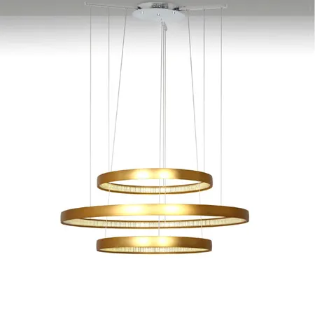 An exquisite combination of material and design. This distinct light fixture uses a superior LED as its light source. These LEDs are energy-efficient and long-lasting, which ensures utmost durability while illuminating the space with soft and comfortable light. The light shape is undeniably a visual treat. Hanging golden rings in different heights and sizes fashion this lamp. Combining with a glossy finish, this product creates an elegant and exquisite image that adds a touch of refinement to any interior.
