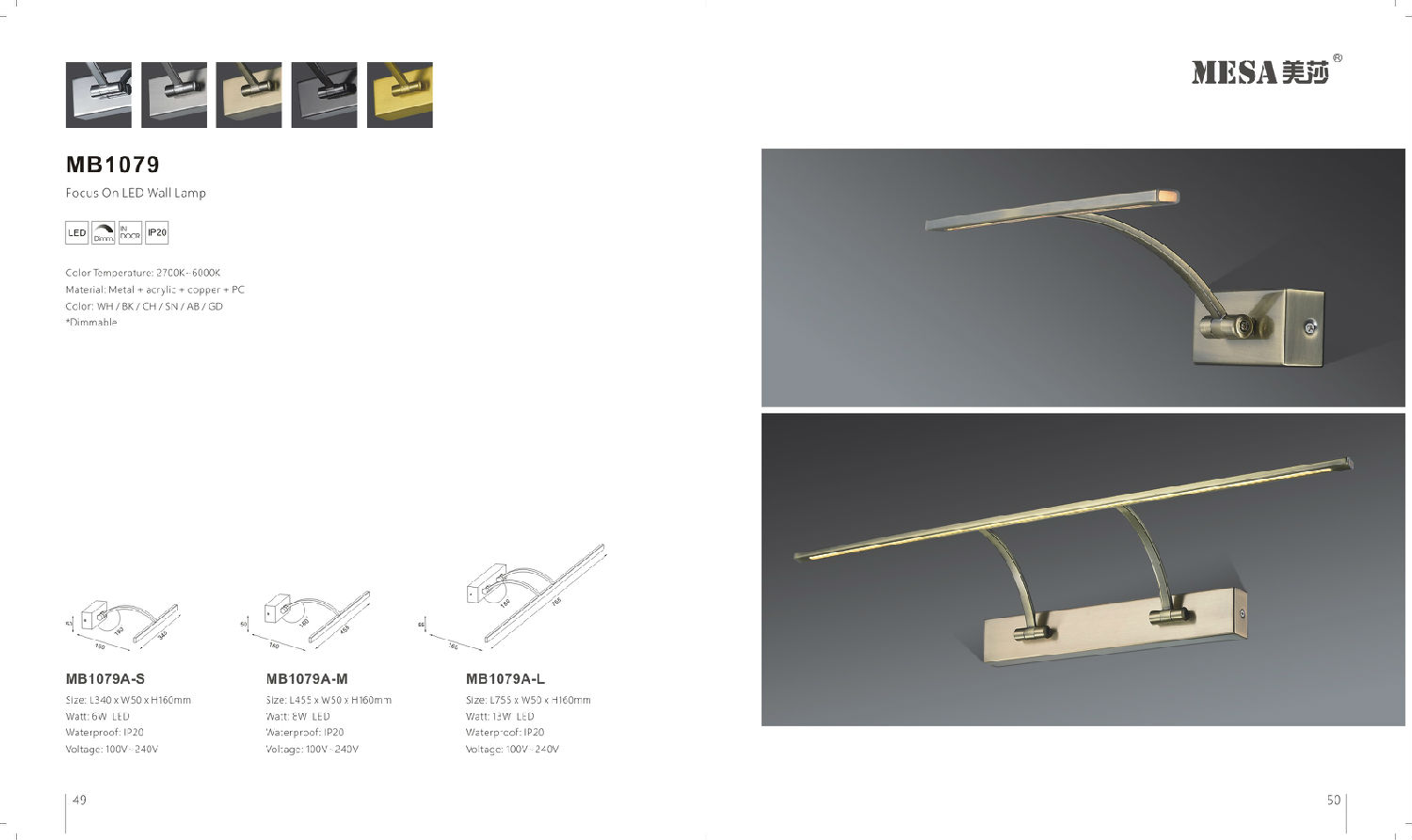 - Indoor picture light with source.