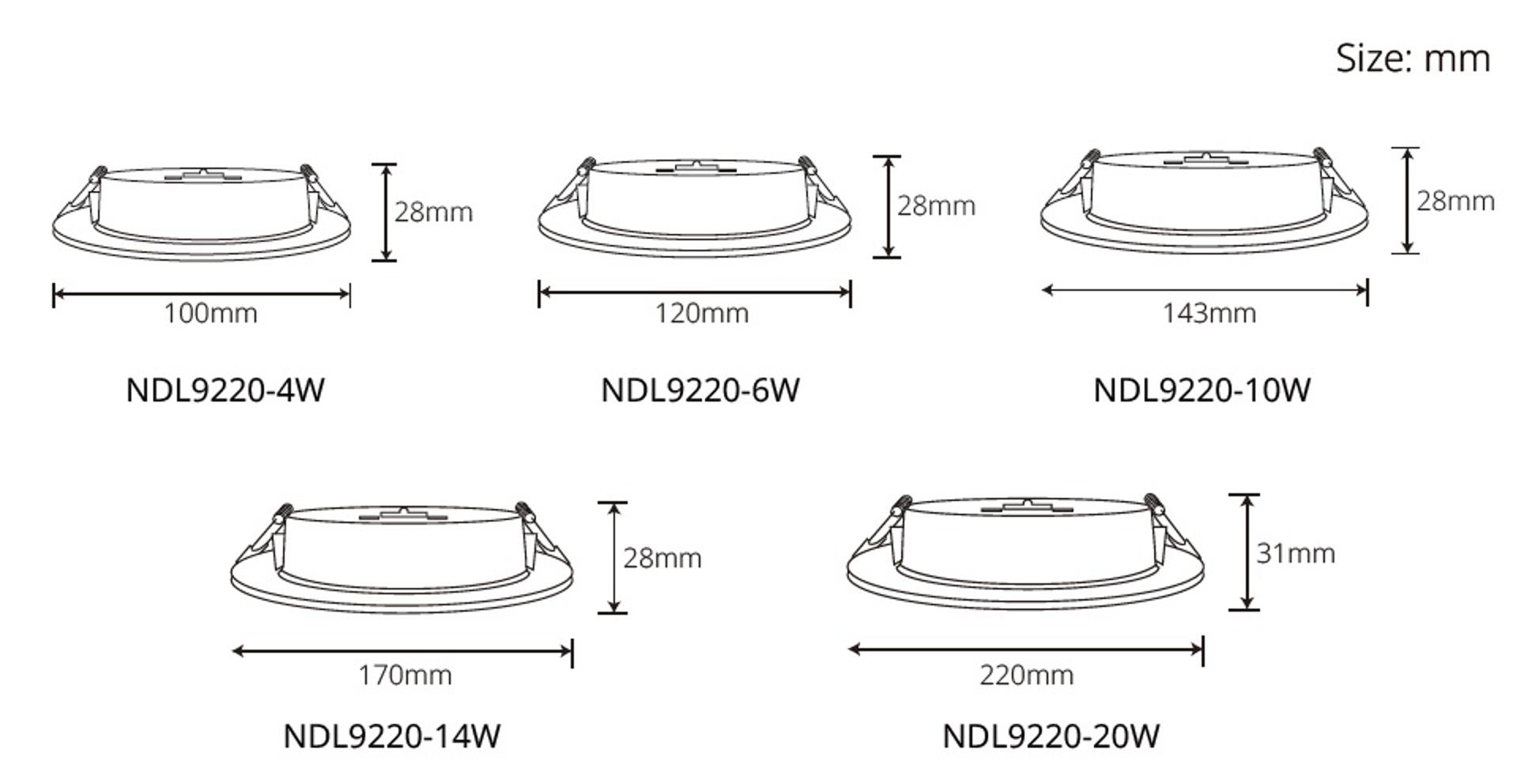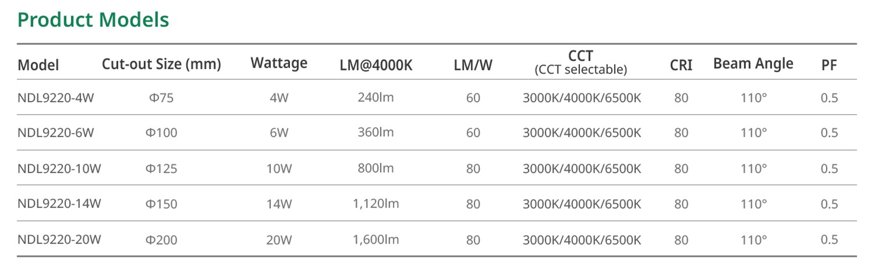 LED Recessed Downlight, CCT selectable, Thin, CE, NVC, NDL9220