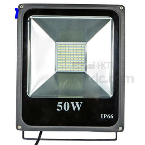 The SMD LED floodlight uses SMD5730 LEDs for illumination. It has a rectangular housing and has a mounting bracket at the back. The floodlight offers an adjustable light beam direction and ensures high brightness.