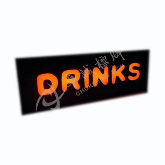 The rectangular sign boasts eye-catching English characters in vibrant red. It is equipped with high-brightness light emitting diodes for a long service life. The housing is made of aluminum with a burnished black finish. A variety of images can be created on the sign, making it a perfect sign for vending machines.
