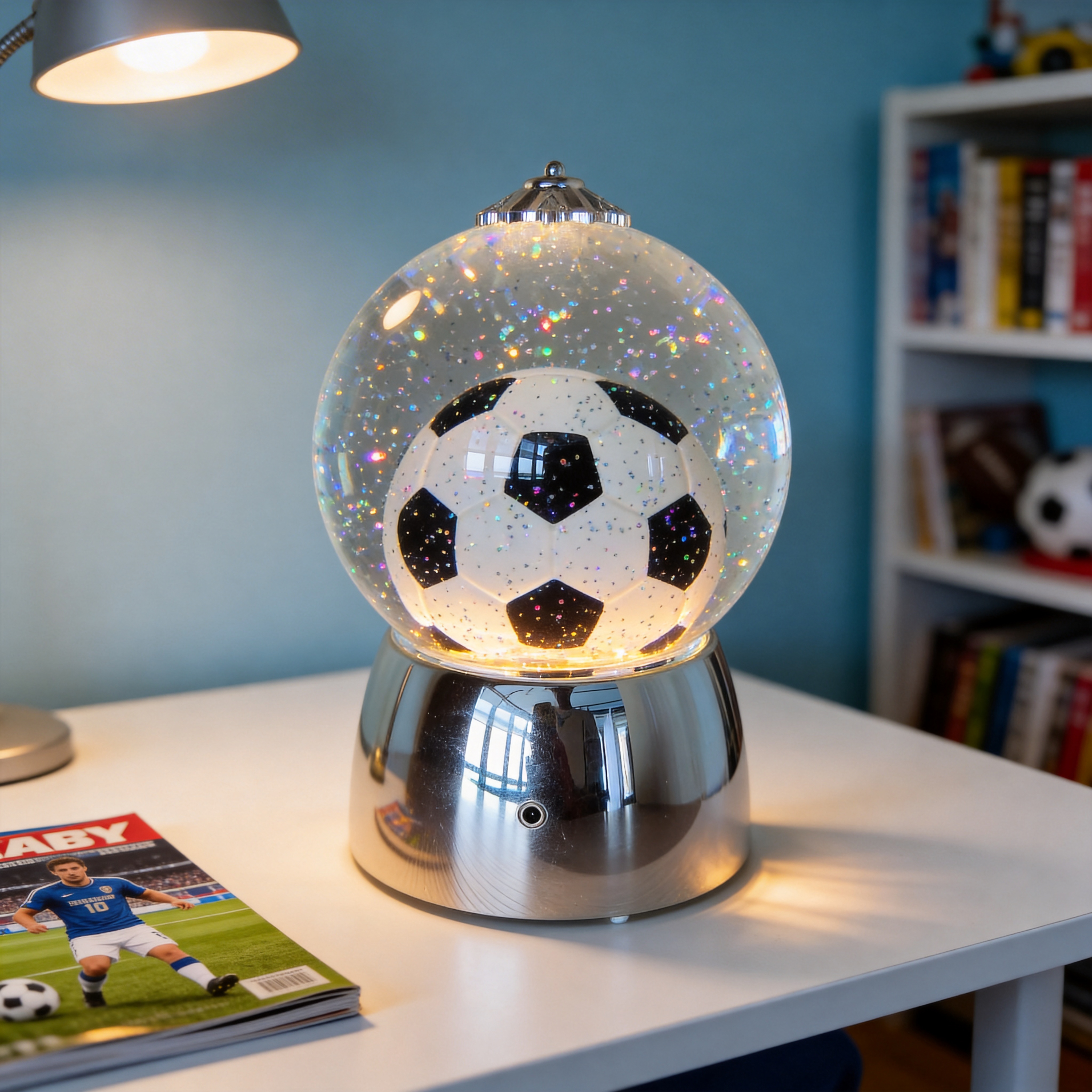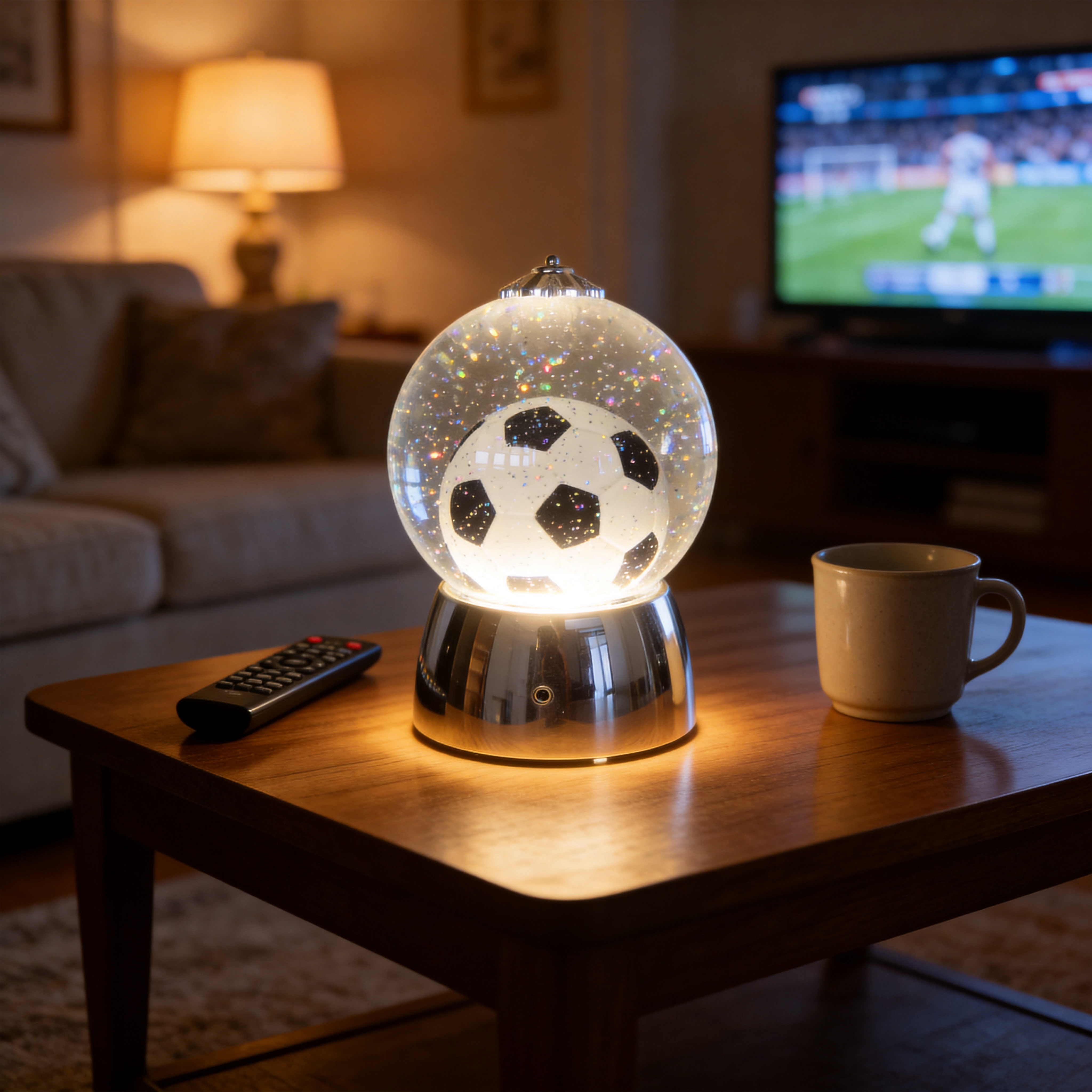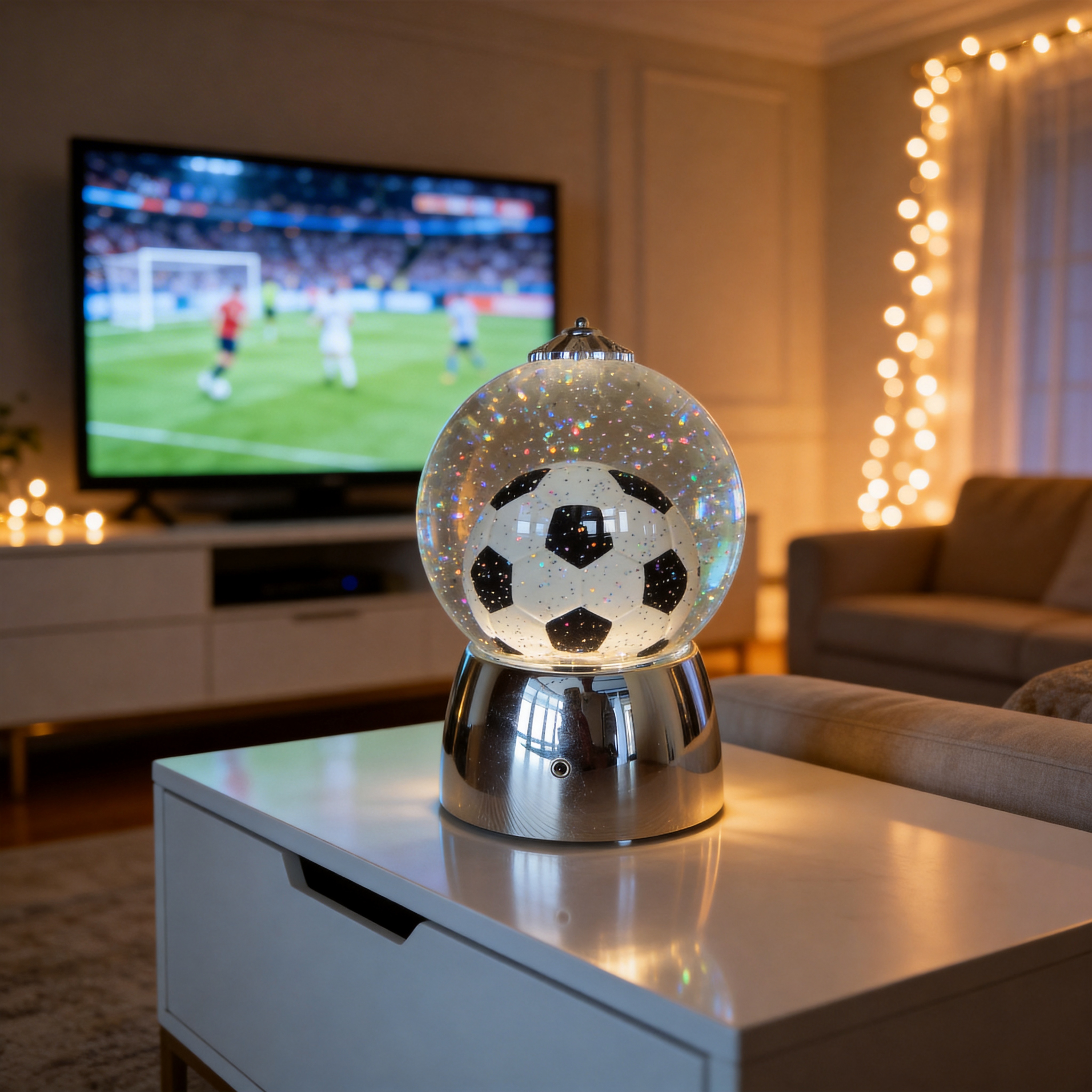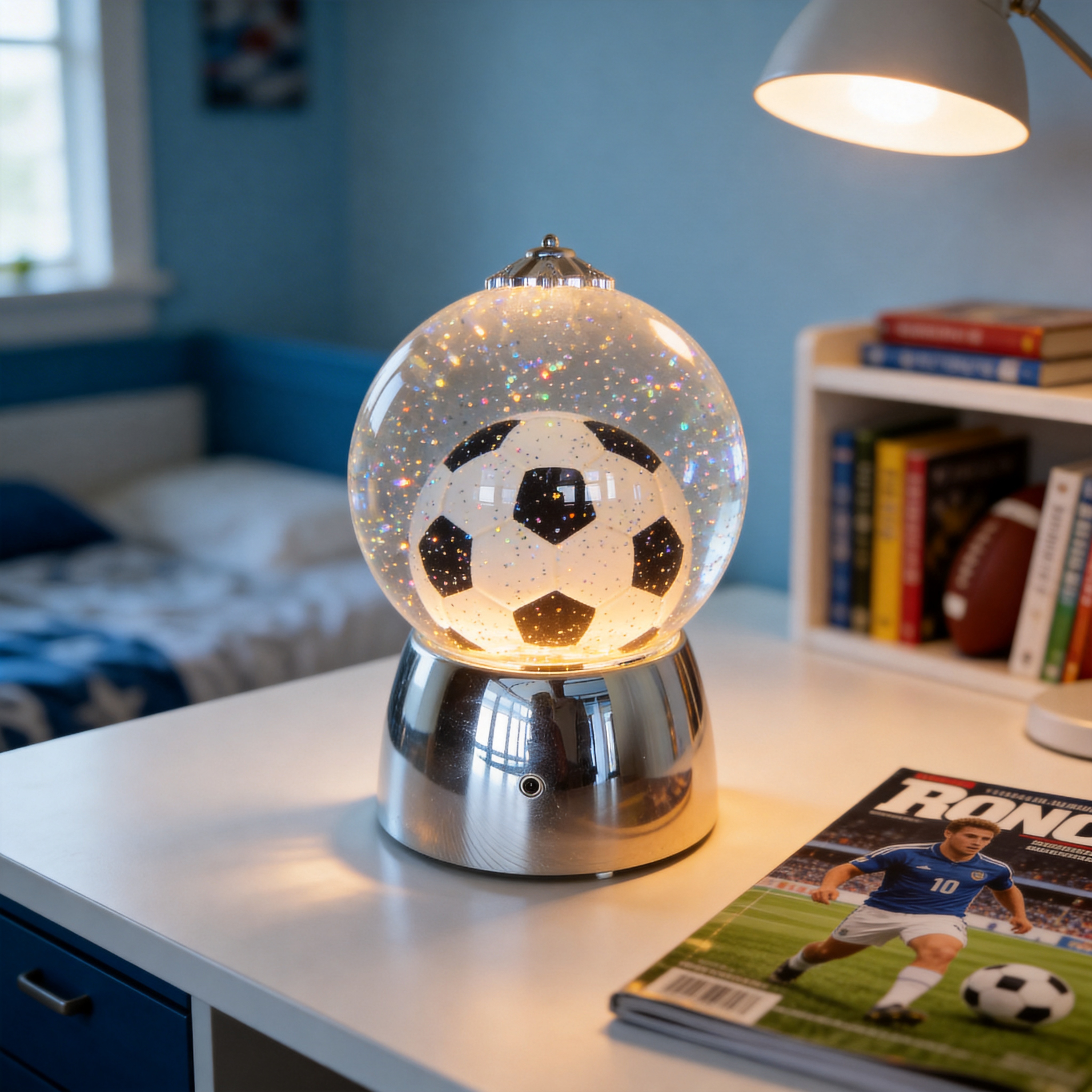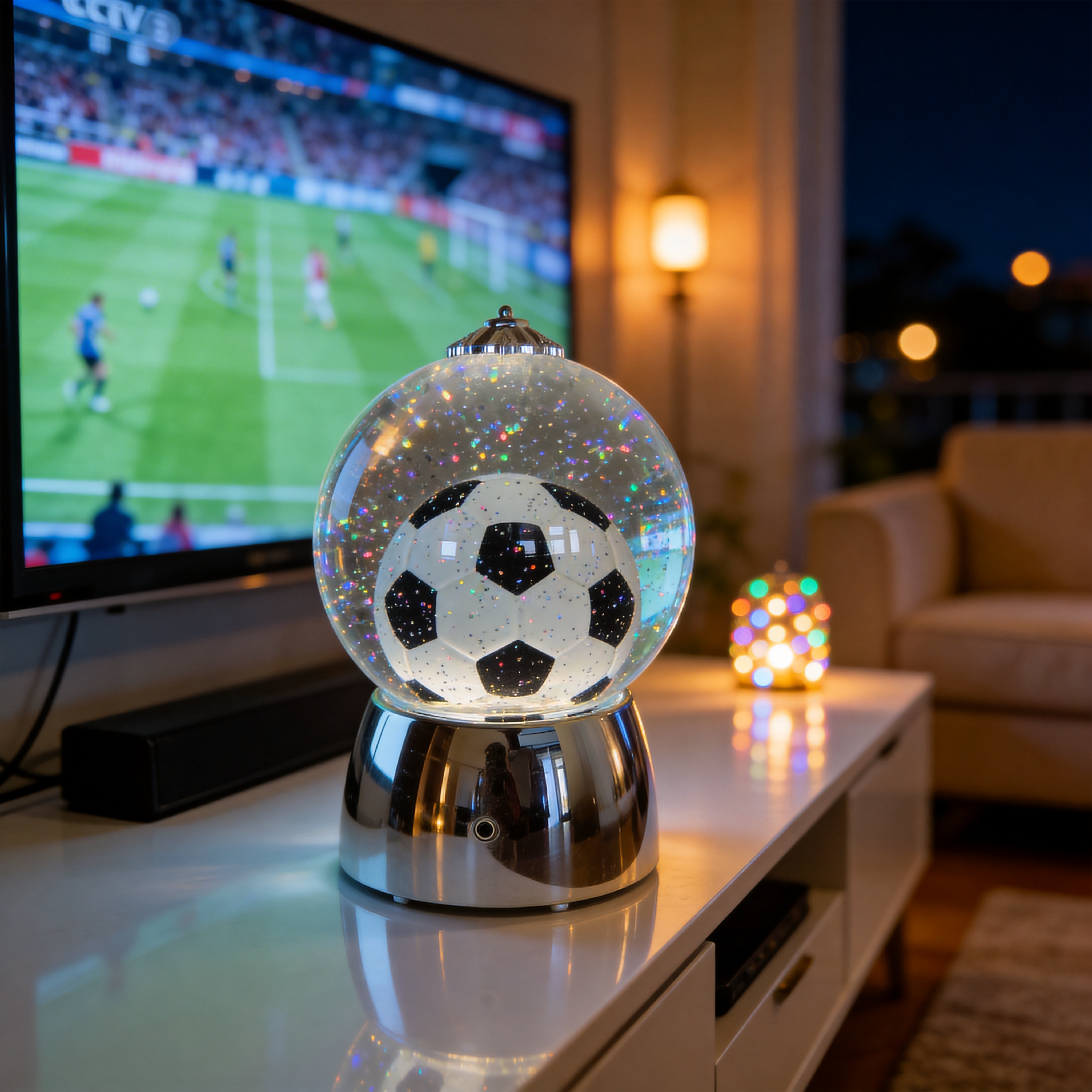 Soccer Ball Design – Classic football pattern inside a crystal globe