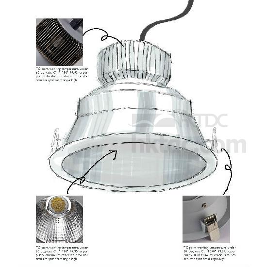 Deep baffle recessed spotlight, adjustable laminate surface hidden inside 100mm painted die-cast aluminum conical baffle, ensure characteristic spot beam with recently glare control. Best solution of accent lighting put over customer flowing passageway and large sales area. Available in LED modules up to 5000lm output with choice of 3000K / 4000K color temperature.