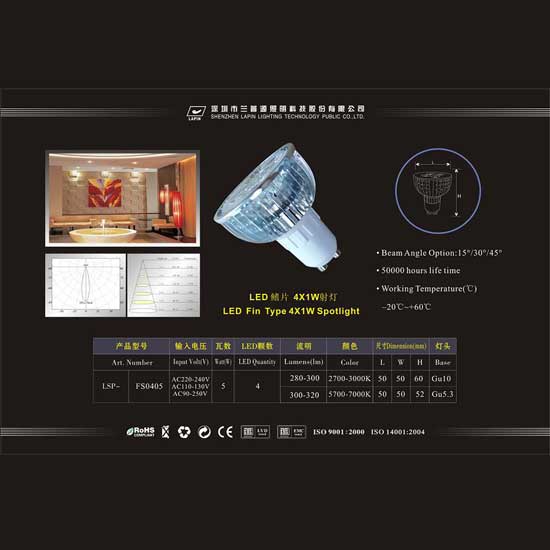 This fin-type spotlight bulb comes with 4 powerful LEDs for smooth and even light distribution. It offers three beam angles for meeting your needs. This LED light bulb makes an energy saving choice for indoor lighting.