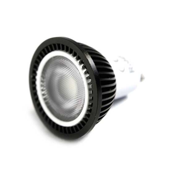This LED spotlight bulb features a cup-shaped body in a black finish. The quality LED spotlight bulb boasts high luminaire efficiency and a long lifespan. The versatile LED bulb is a great lighting option for museums, retail stores, art galleries, etc.
